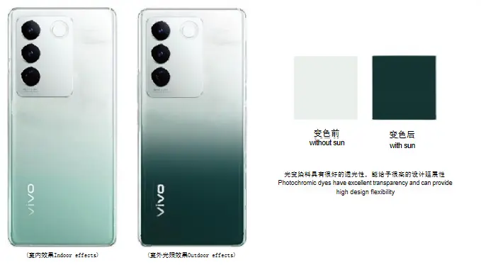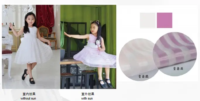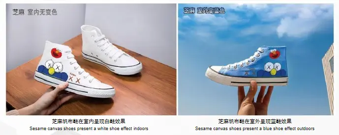 Фотохромний матеріал — це фотохромний порошковий матеріал, виготовлений шляхом загортання фотохромних барвників у мікрокапсули за допомогою спеціальних процесів, які можуть поглинати енергію сонячного світла (ультрафіолет) після опромінення сонячним світлом (ультрафіолетом), що призводить до змін у молекулярній структурі, що призводить до змін довжин хвиль поглинання, що призводить до зміни кольору; Коли сонячна (ультрафіолетова) енергія втрачається, вона повертається до своєї первісної молекулярної структури та відновлює свій початковий колір. характеристика: